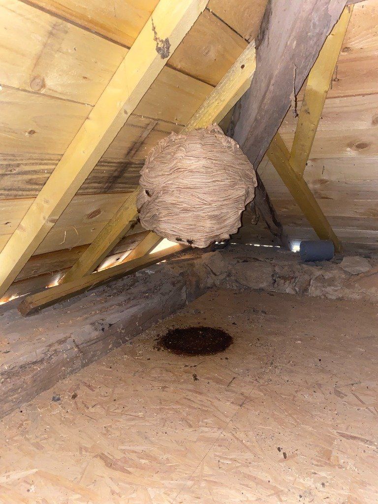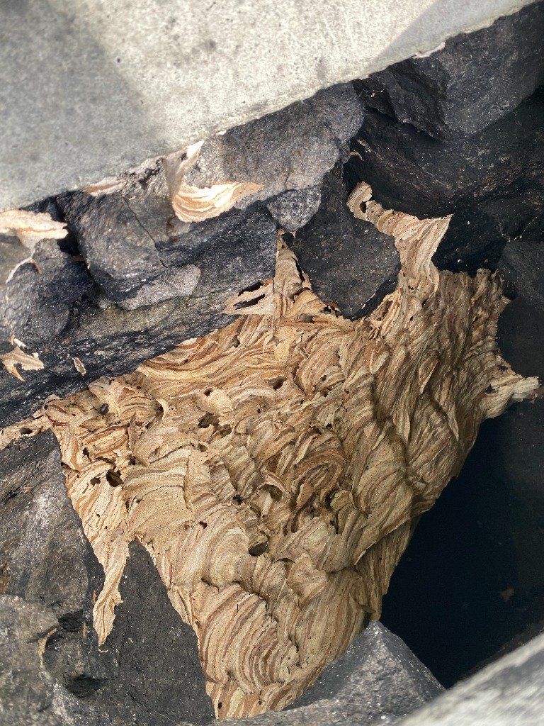 Intervention en tête de cheminée sur un nid de frelons européens