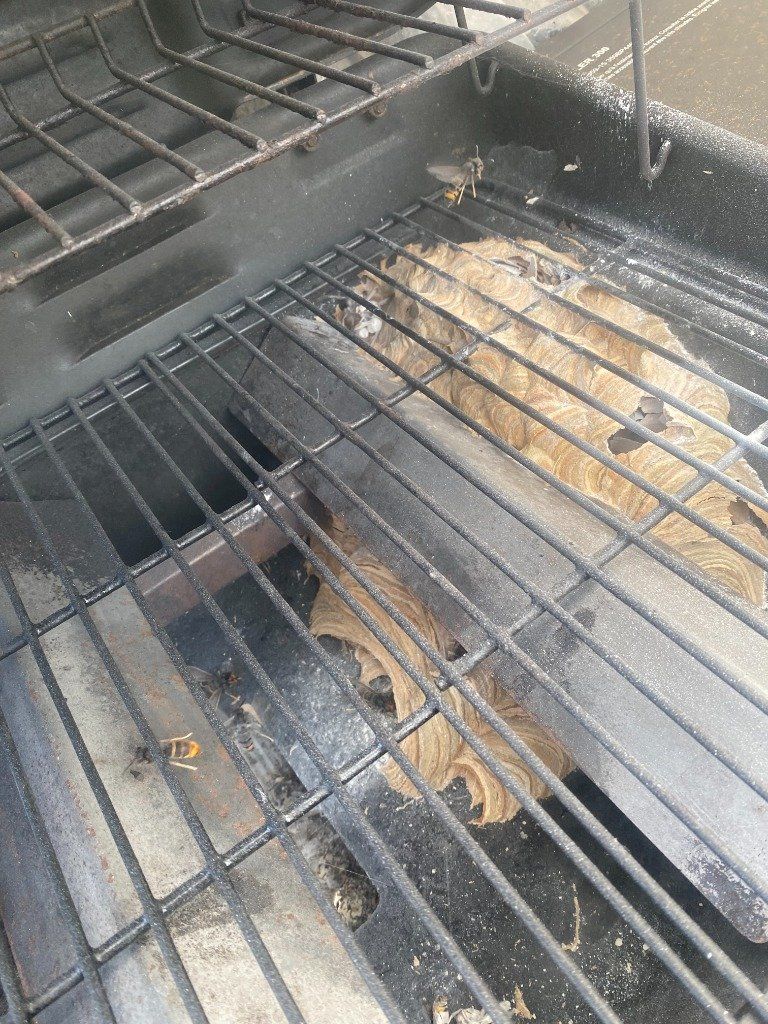 Intervention d'un nid de frelons asiatiques dans un barbecue sur la commune de SARZEAU