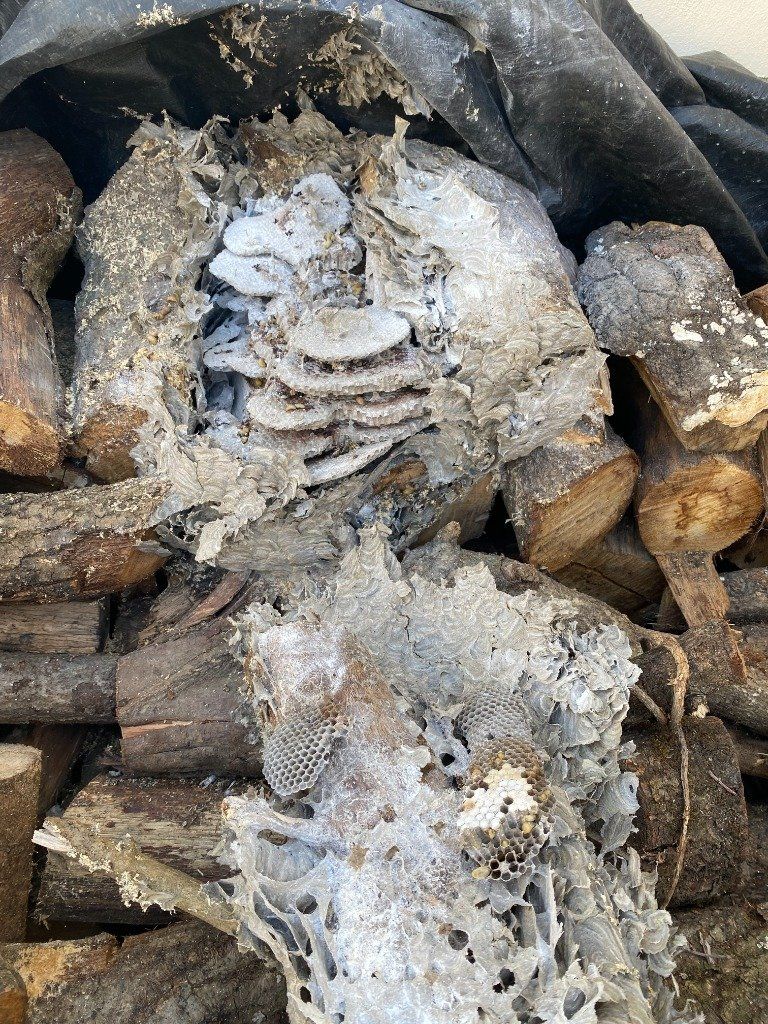 Intervention dans un tas de bois sur un nids de guêpes sur la commune de NOYAL-MUZILLAC